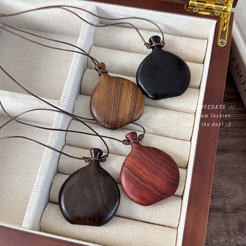 Vintage Wooden Hags Pendant Long Necklace Pull-out Adjustable Ethnic Style Woolen Chain Simple Commuting Accessories