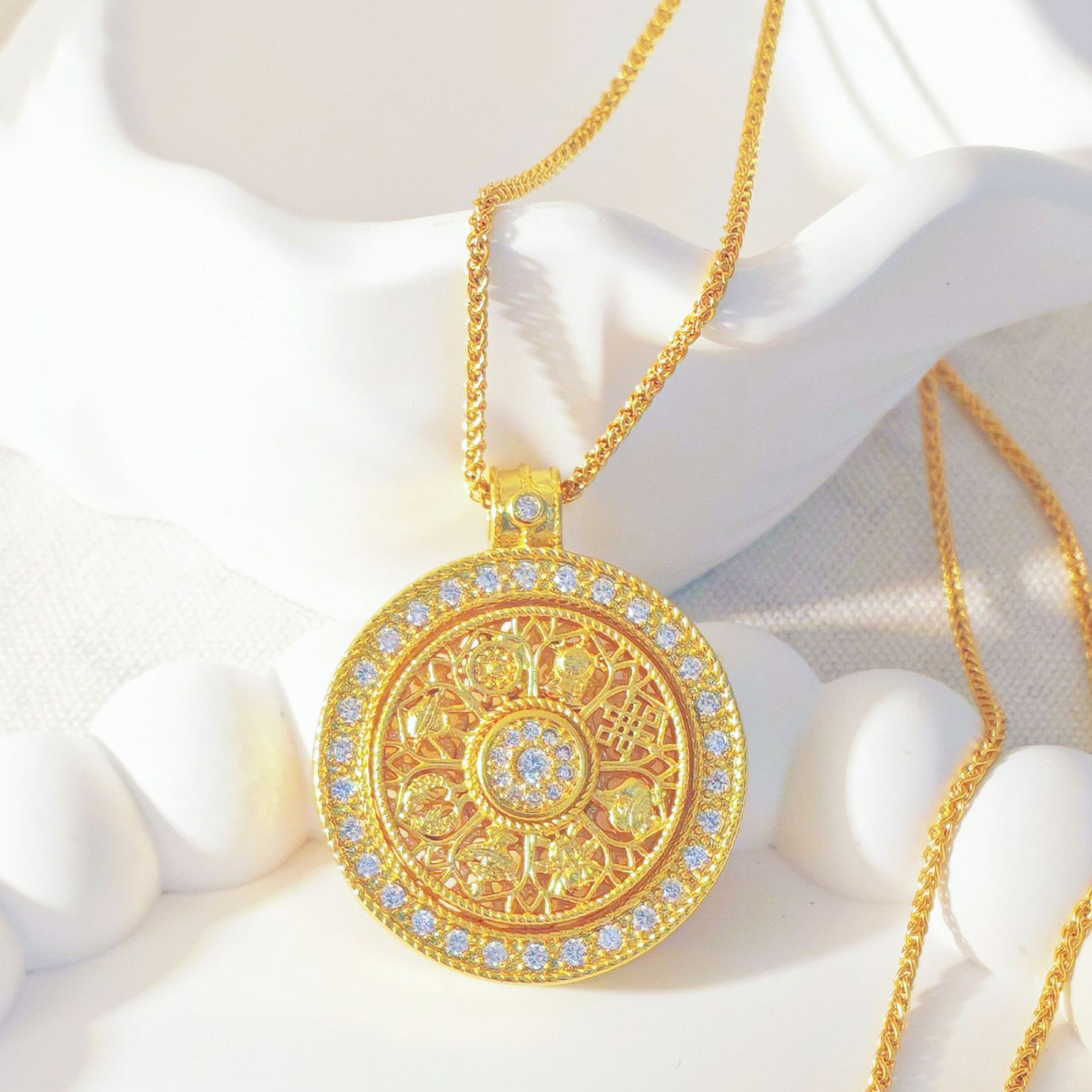 Trendy Live-Stream Diamond-Studded Rotating Auspicious Eight-Treasure Compass Pendant with Wish-Fulfilling Rope, Hollow Compass Sweater Chain Necklace for Women