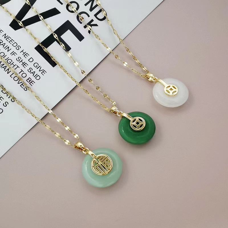 Internet Celebrated Live Short Golden Titanium Steel Necklace Lip Chain with Ping An Buckle Fu Character Stainless Steel Clavicle Chain for Women