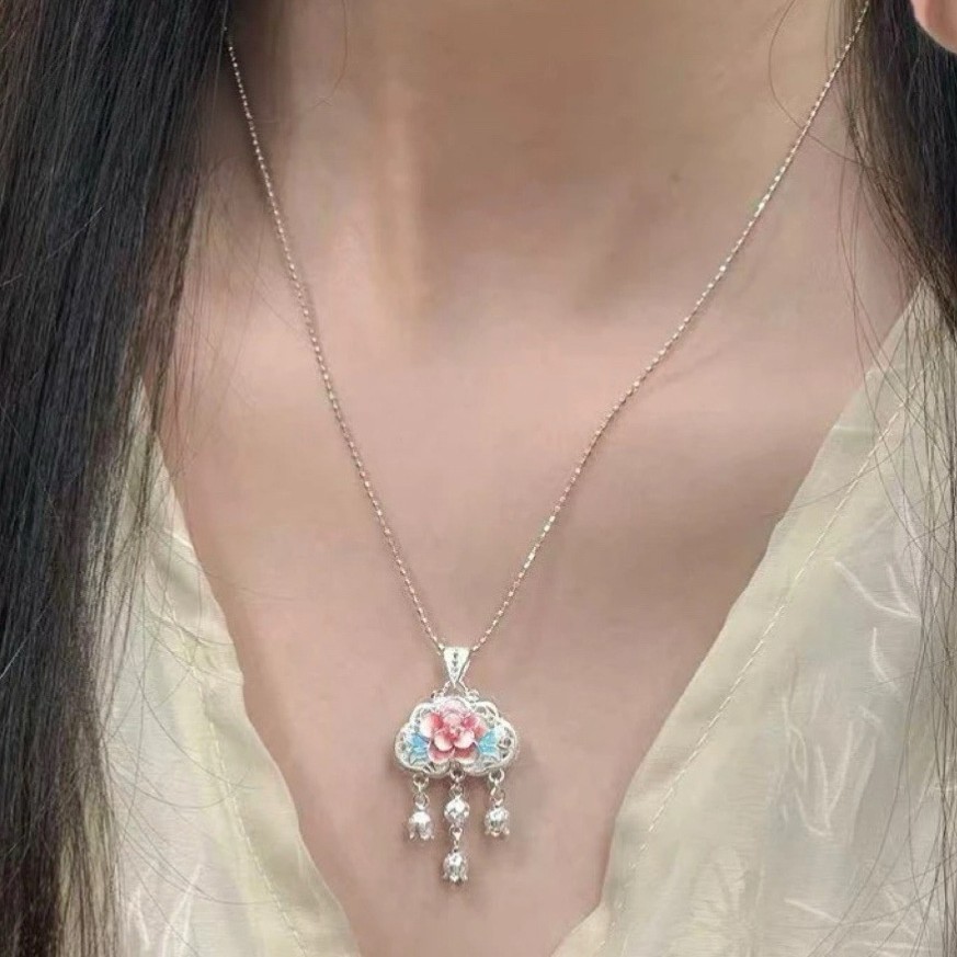 Floral Bell Drunken Style Ethnic Rich New Chinese Style Necklace for Women, Light Luxury Niche High-End Design Pendant Accessories Jewelry