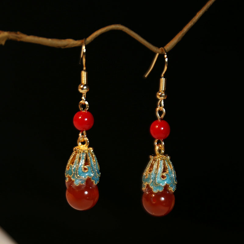 Unique Earrings National Style Elegant Earrings New Chinese Style Ancient Style Design Horse Face Skirt Earrings Red Bridal Cheongsam Pendant