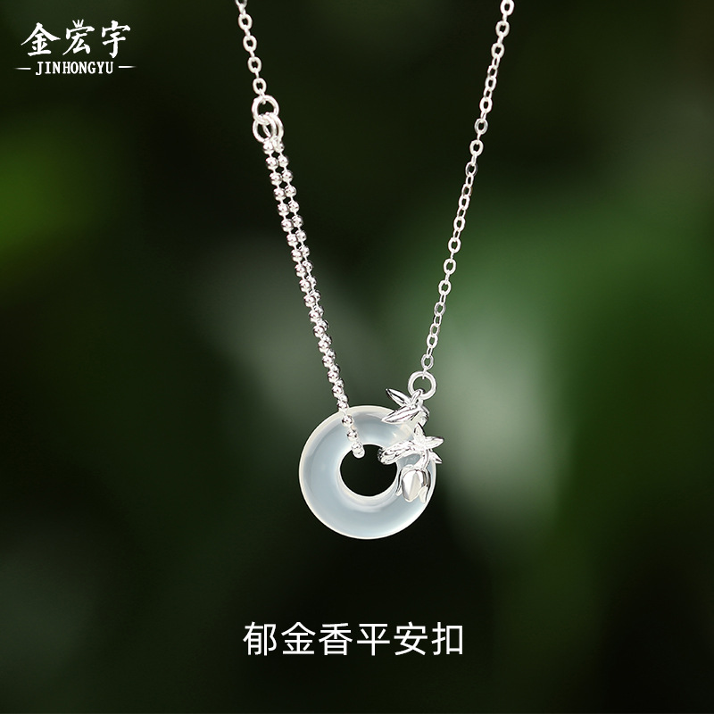 New Chinese Tulip Safe Buckle Necklace Women's Mori Style Retro National Fashion Flower Pendant Simple High-end Clavicle Chain