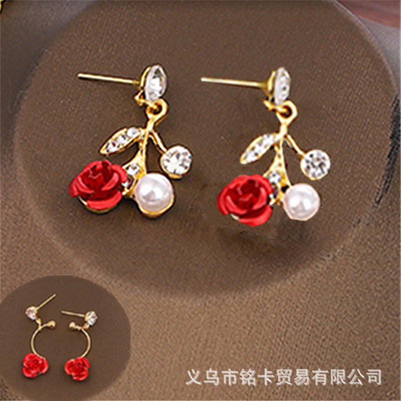 European and American Alloy Rhinestone Earrings Trendy Daily Vintage Earrings Light Luxury Atmospheric Water Drop Earrings Bridal Earrings Red