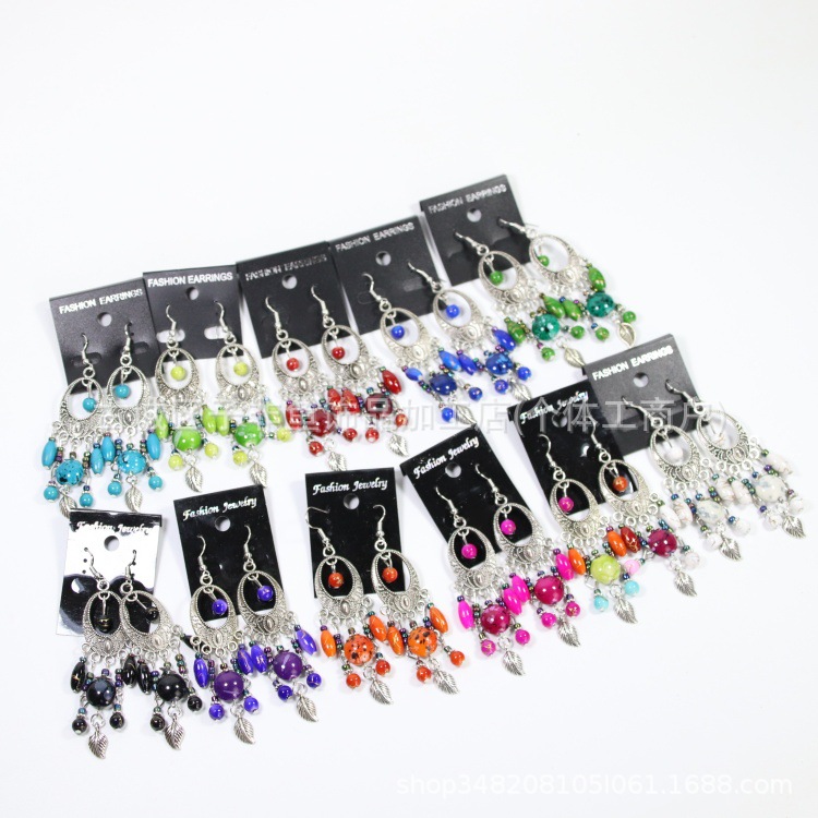 Golden Bell Tassel Earrings Bohemian Leaf Pendant National Scenic Earrings Peacock Earrings Wholesale