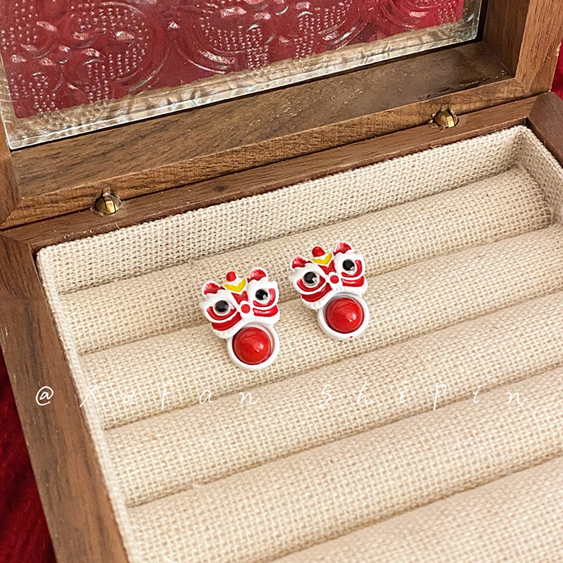 New Year festive niche design red lion stud earrings new Chinese style national style fashion high sense earrings wholesale