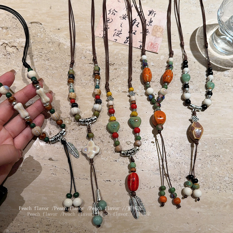 Yimo Yunyan Ethnic Style National Style Jingdezhen Ceramic Woolen Chain New Chinese Feather Porcelain Bead Necklace All-match