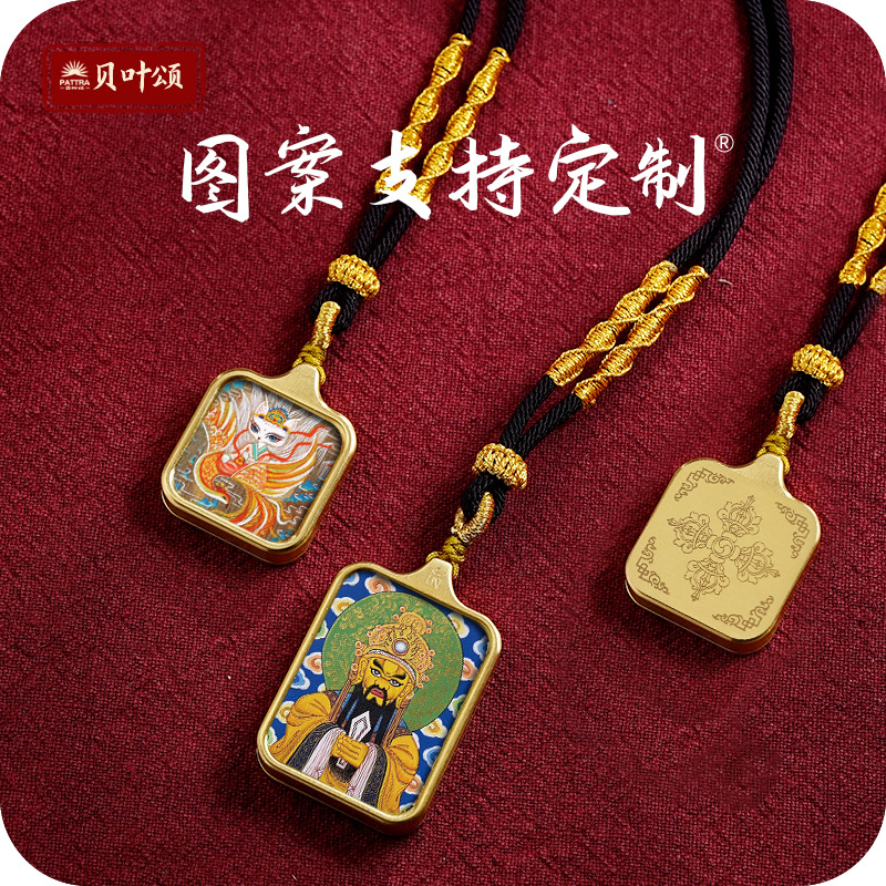 Titanium Steel Small Square Thangka Painting Box Wuye Pendant Yellow God of Wealth Necklace Changeable Figure Titanium Steel Xizang Fashion Accessories