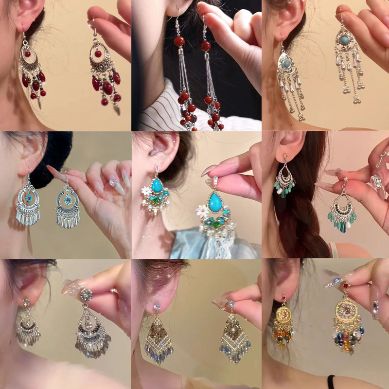 2024 Ethnic Style Tassel Earrings, Antique Style, Cold Style, High-end, Accessible Luxury, Niche Design, Retro Earrings