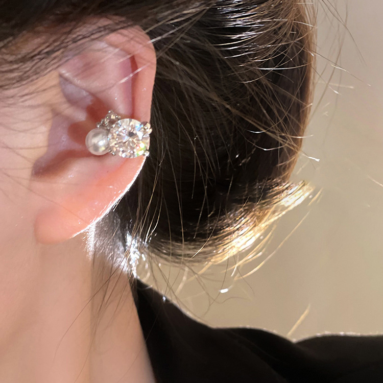 Pearl zircon ear clip women's new light luxury high-end niche ear clip cold wind painless ear accessories