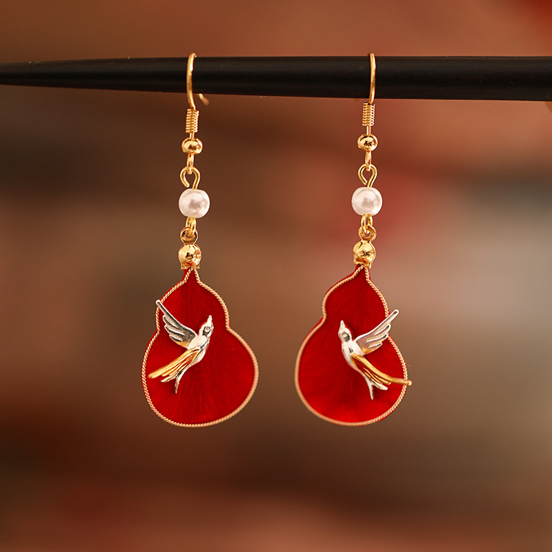 [Original Handmade Collection] Gourd Silk Velvet Flower Earrings New Chinese Style Cheongsam New Year Red Ear Accessories