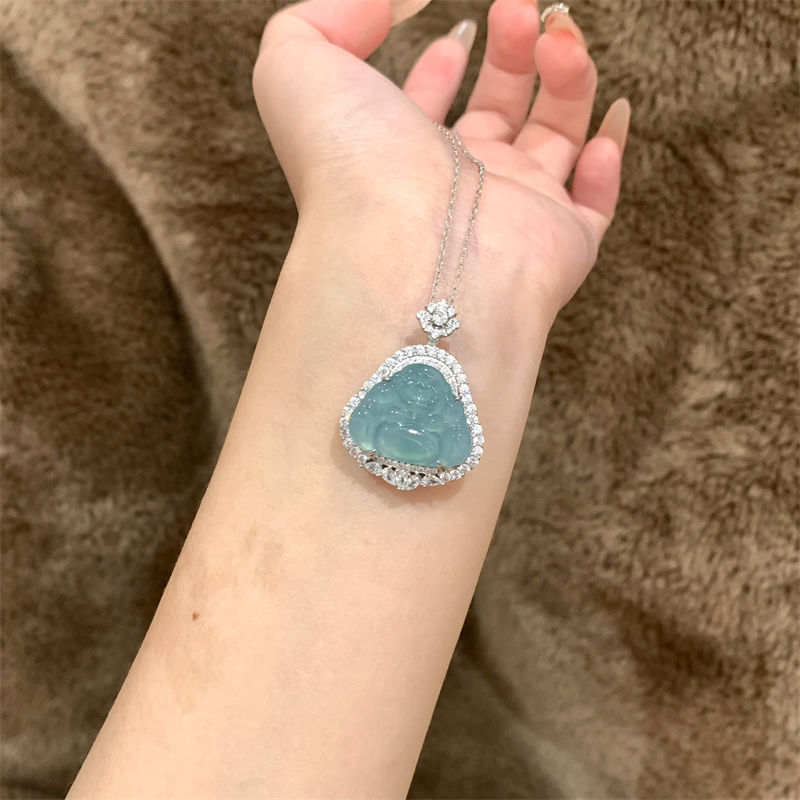 2024 Popular Smiling Face Maitreya Buddha Pendant Necklace for Women New Chinoiserie Super Flash Full Diamond Necklace Niche Clavicle Chain