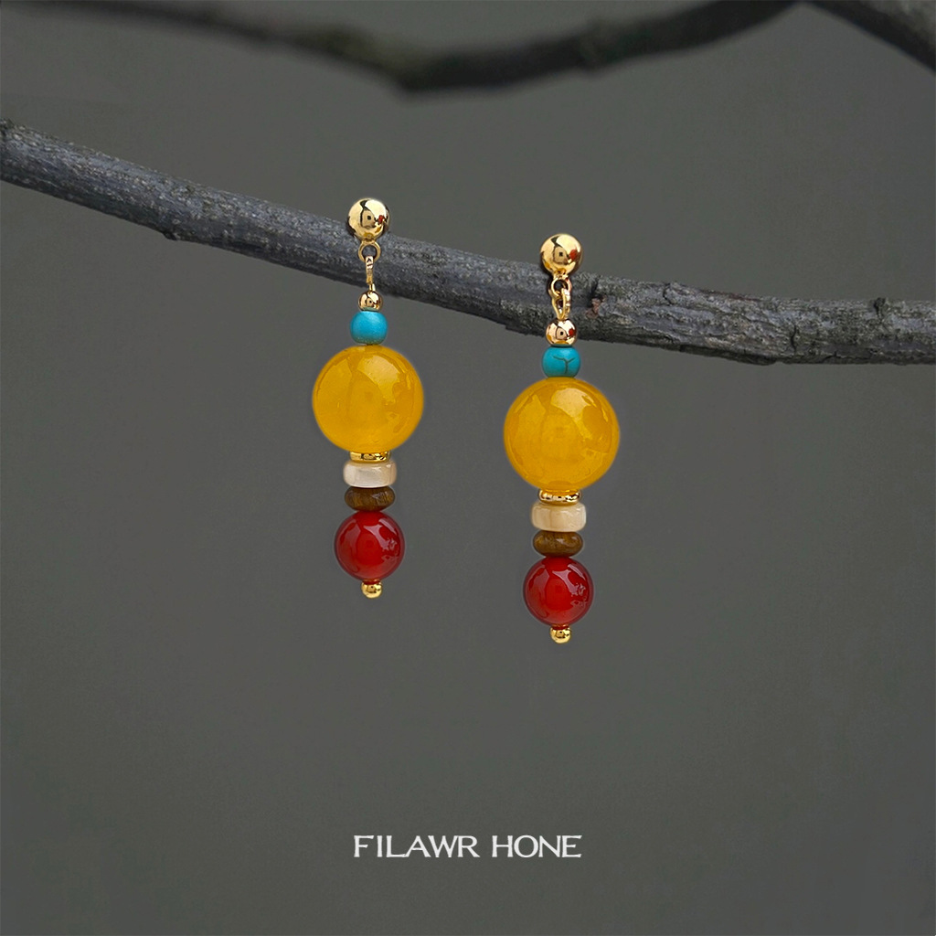 Designer Style National Trend Ethnic Style Natural Stone Topaz Red Agate New Earrings Factory Hot Selling Earrings Supply Chain
