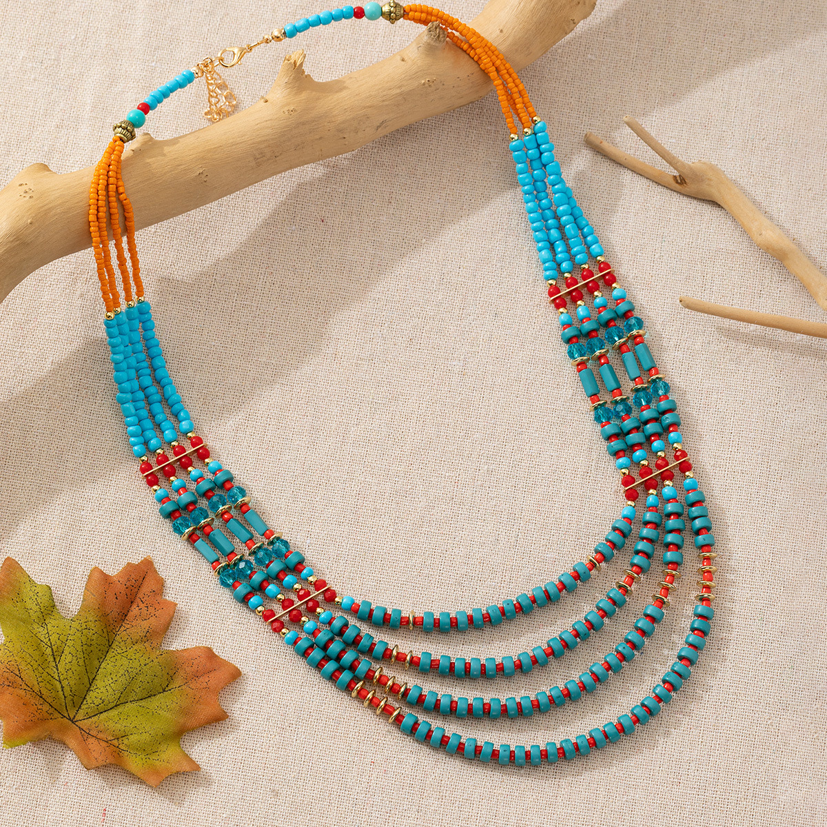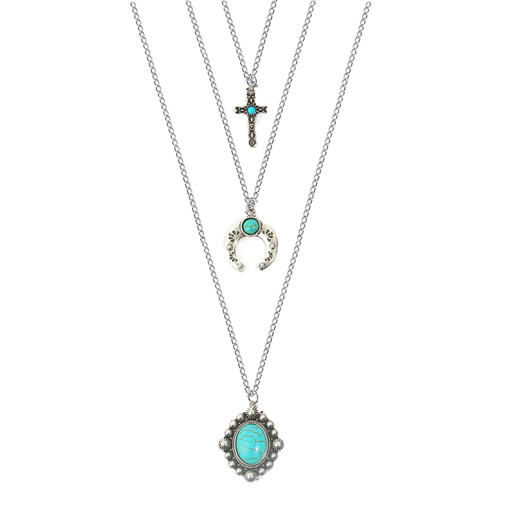 Cross-border hot sale turquoise multi-layer necklace Women's European and American fashion ethnic style alloy cross pendant necklace