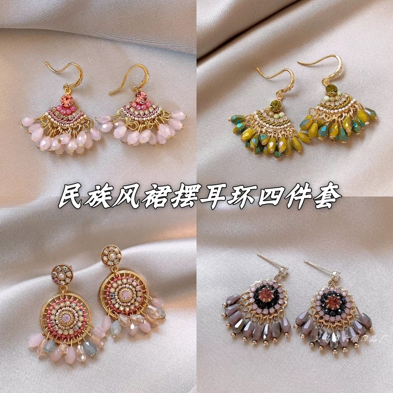 Bohemian Fan-Shaped Crystal Tassel Ear Hook Earrings for Women, Niche Earrings Suitable for Summer Earrings