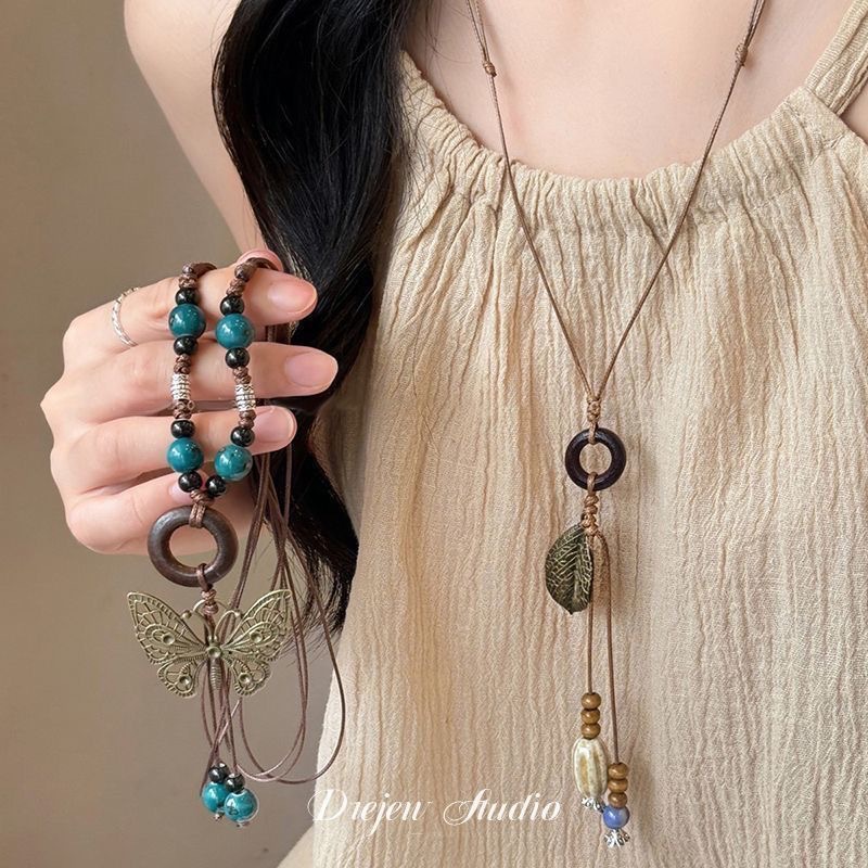 Ethnic style long imitation beeswax sweater chain creative all-match necklace ocean blue accessories scenic spot hot sale gifts