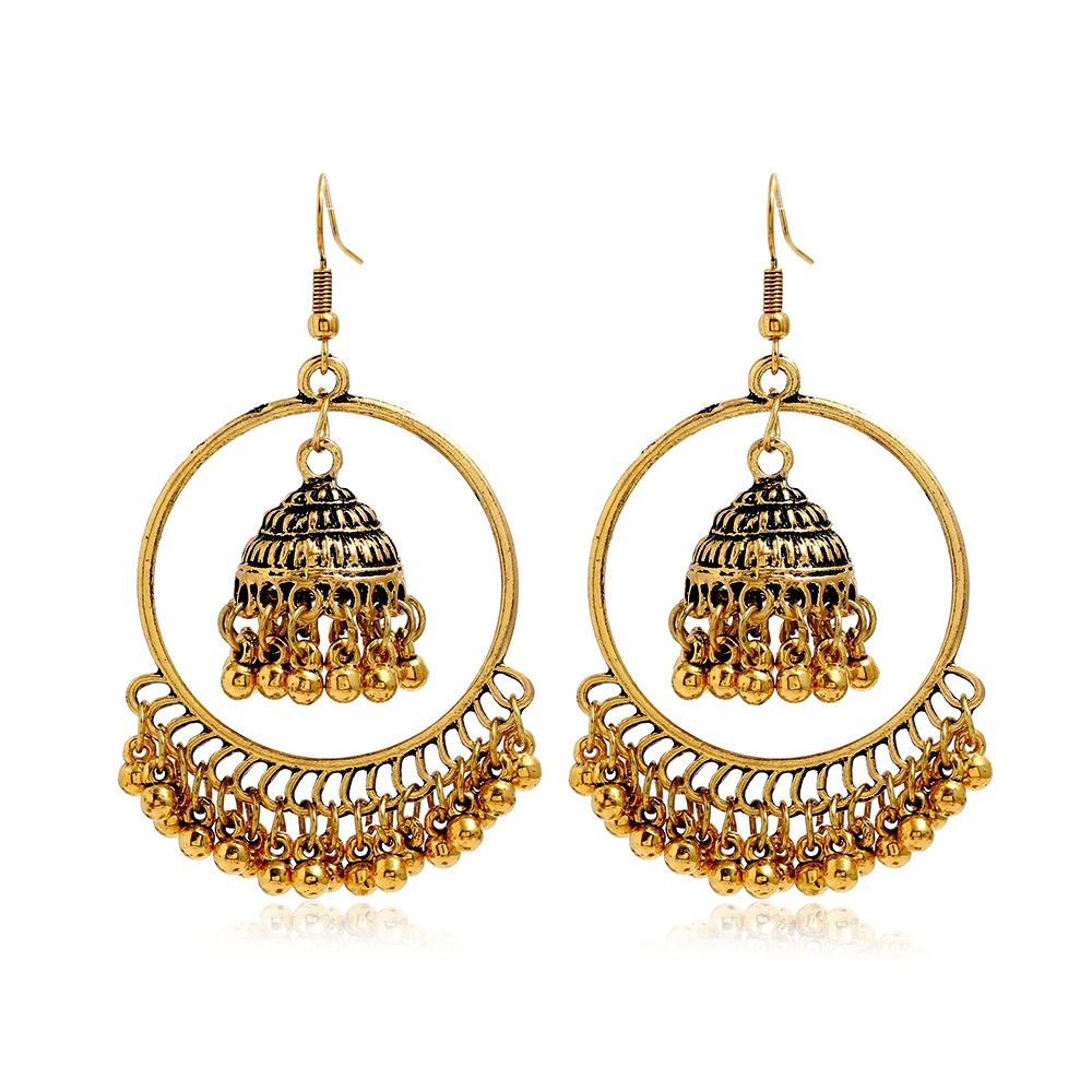 Ethnic Style Retro Earrings European and American Exaggerated Indian Style Oil Drop Metal Ball Earrings Women's Water Drop Tassel Earrings