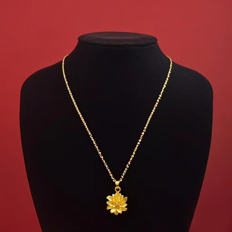 Gold Plated Clavicle Chain Pendant Hollow Blessed Bag Gourd Guanyin Buddha Necklace Women's Advanced Sense Necklace Pendant Shake Tone Explosions Live