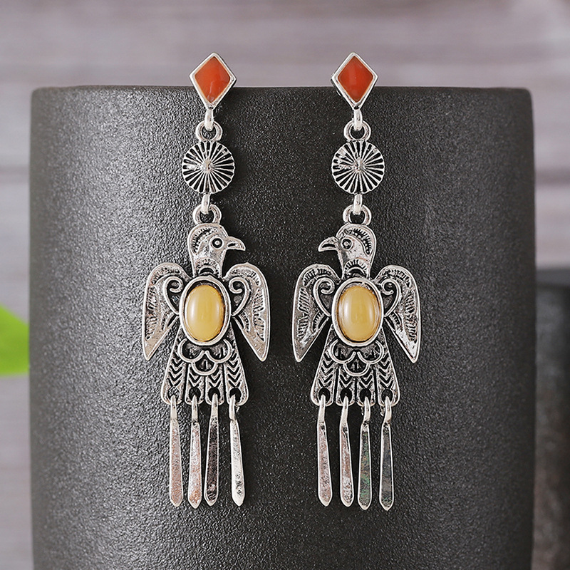 Suxin Cross-Border Hot-Selling Retro Amethyst Cut Out Carved Earrings Niche Design Ethnic Style Versatile Women's Earrings