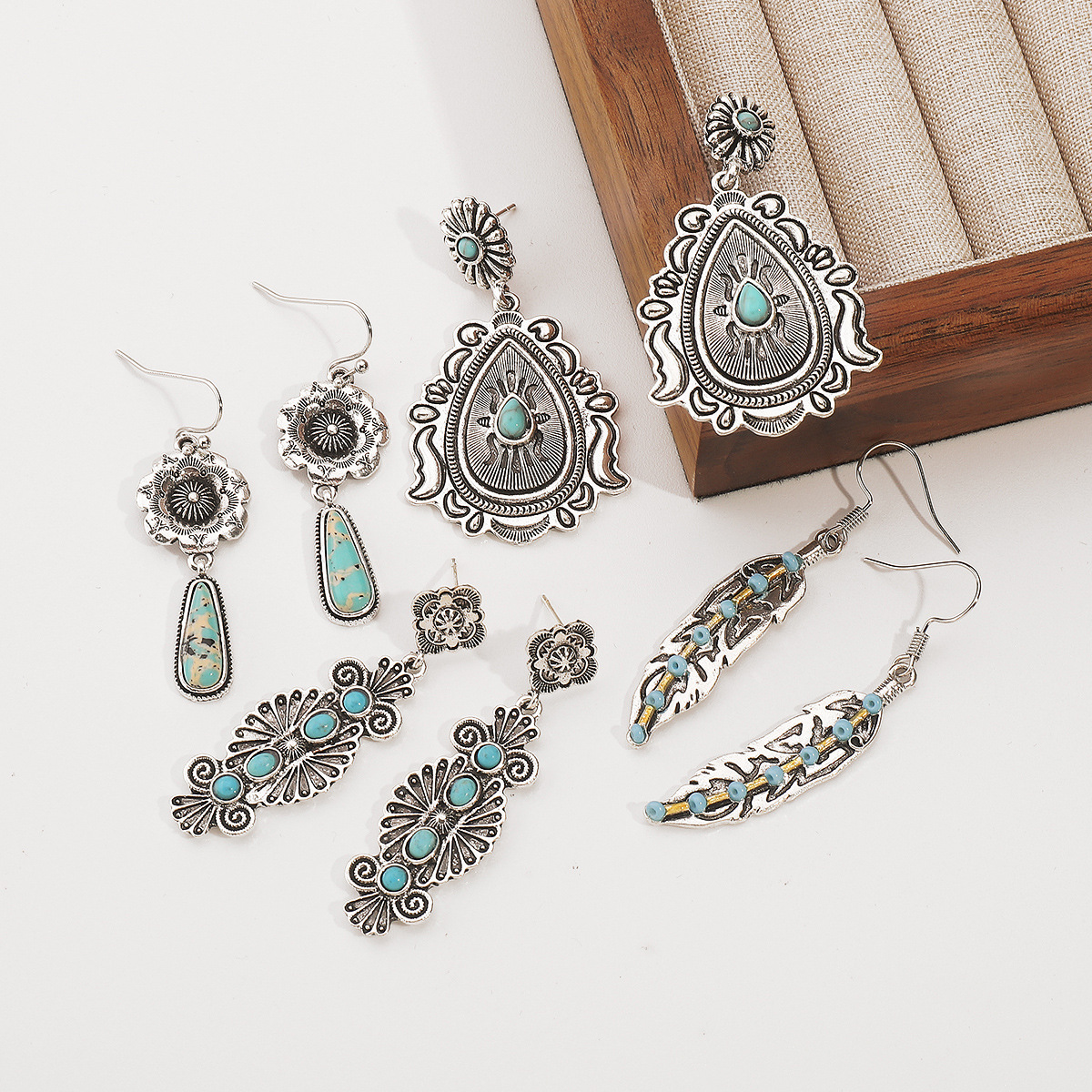 New Chinese Style Imitation Turquoise Ethnic Style Earrings for Women Niche Tassel Earrings Fashionable and Versatile Bohemian Style Earrings