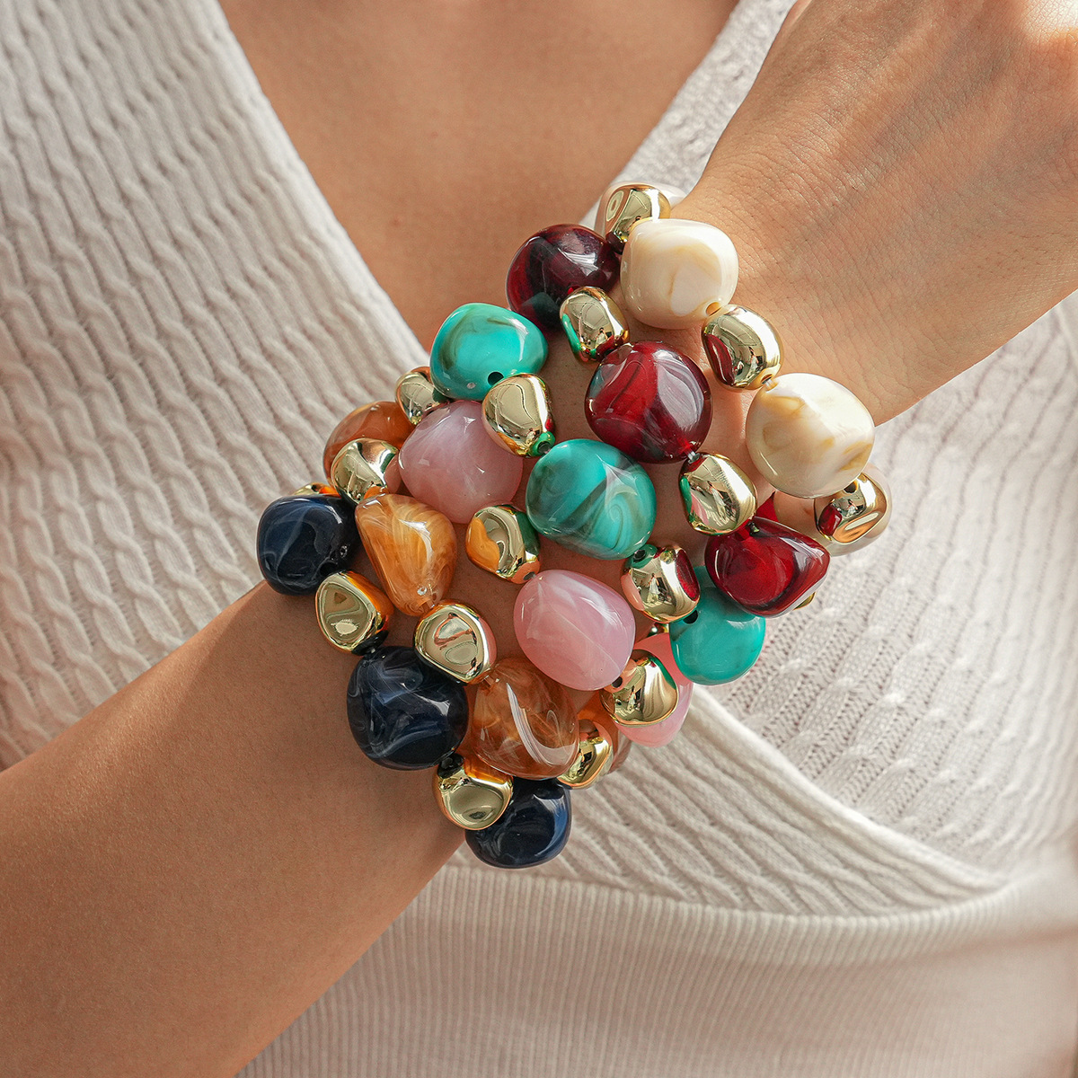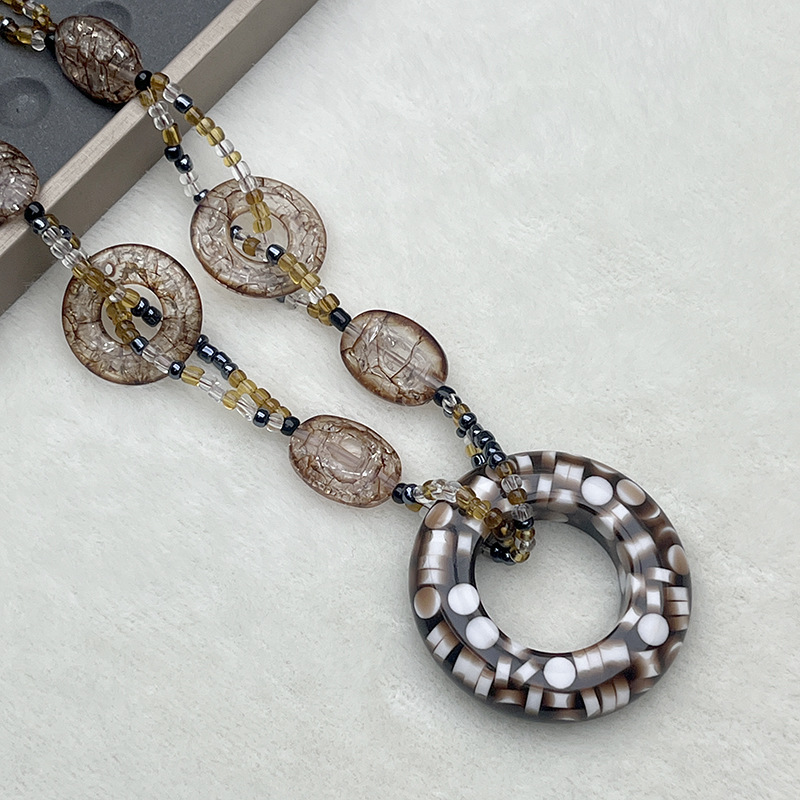 European and American Acrylic Smudged Asymmetrical Geometric Beaded Necklace Retro Ethnic Style Niche High-End Necklace Set