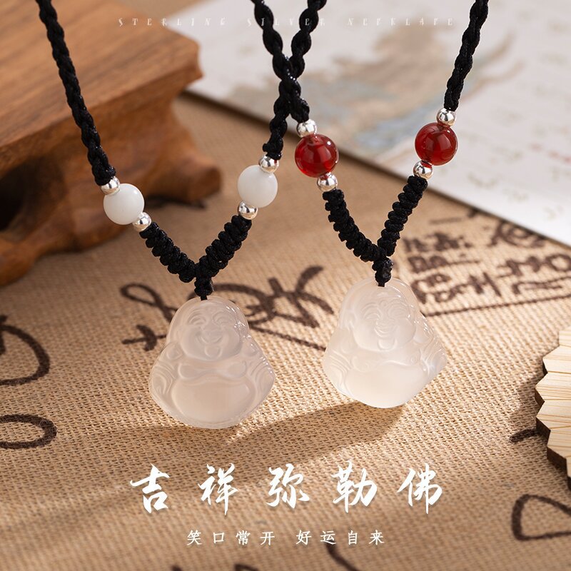 Chenxi Natural Chalcedony Big Belly Buddha Bodhi Woven Black Rope Maitreya Necklace Simple Clavicle Chain Gift Necklace
