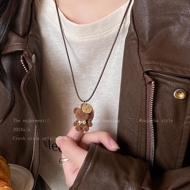 Cute brown Plush Bear Necklace Girls Autumn and Winter 2024 New All-match Sweat Chain Children's Fun Student Party Accessories
