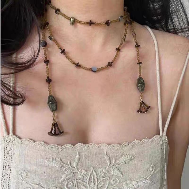 New Chinoiserie Retro Round Brand Beaded Necklace Women's Horse Face Skirt Han Dynasty Cheongsam Sweater Chain Ancient Style Ethnic Style Accessories