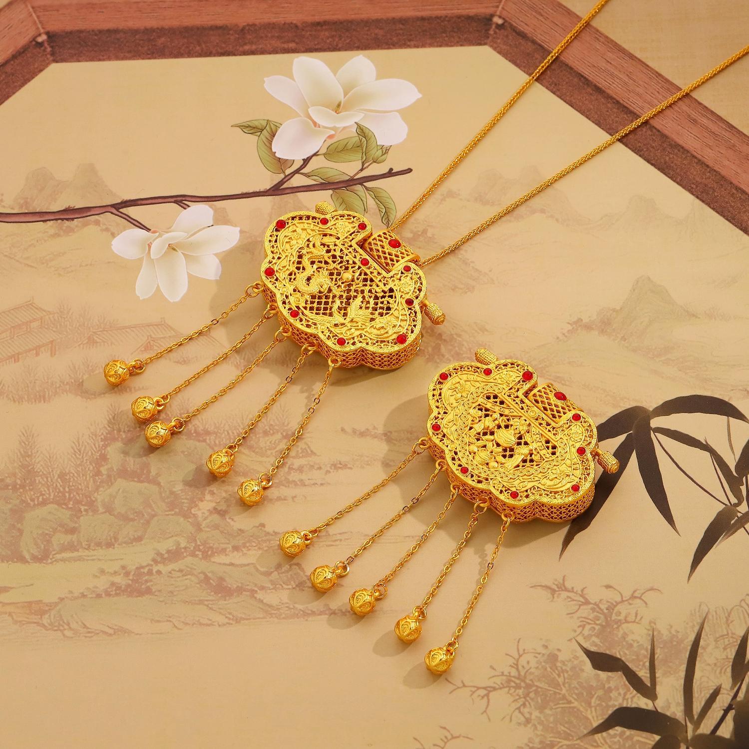 Emperor's Student Lock Bag Pendant Necklace Female Filigreth Inlay Design Temperament All-match High-end Ripe Necklace