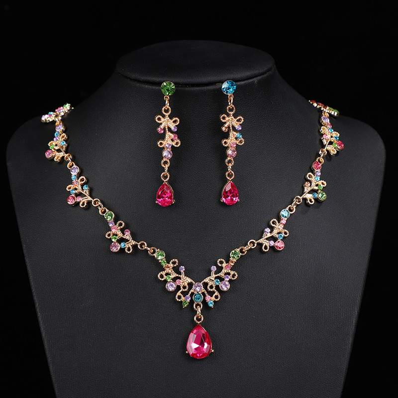 Cross Border Wedding Elegant Necklace Earrings 2 Piece Set Jewelry Fashion Elegant Dress Accessories Birthday Party Rhinestones