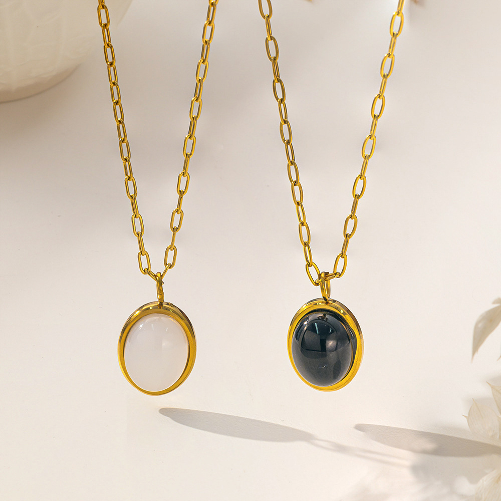 Light Luxury and High-End European and American Fashion Accessible Luxury Retro Style Black and White Cat's Eye Stone Pendant Necklace for Women 18K Titanium Steel Clavicle