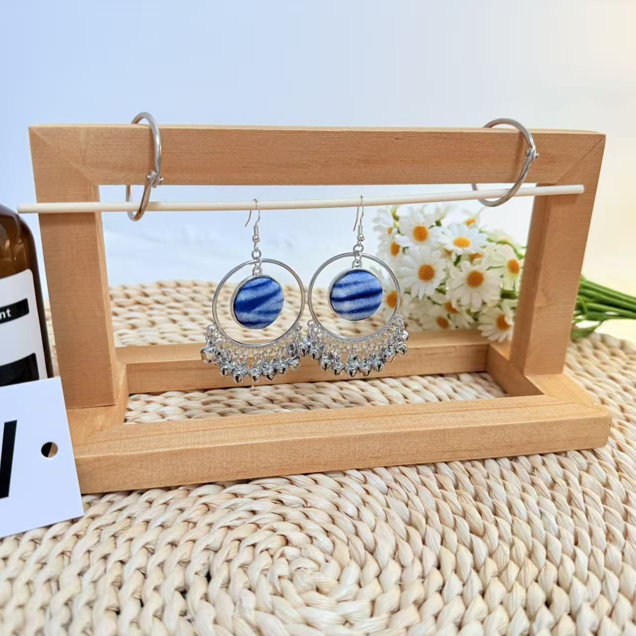 Yunnan Ethnic Style Earrings Dali Tie-Dye Blue Dye Handmade Fabric Buckle Retro Style Earrings Wholesale