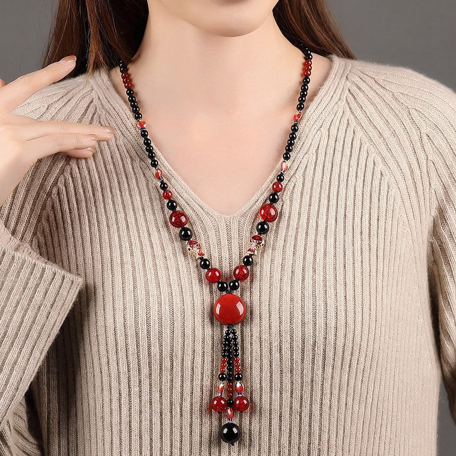 Ethnic Style Jewelry Cloisonné Red Fish Sweater Chain Pendant Chinese Pendant Accessories Women's Long Agate Necklace Decoration