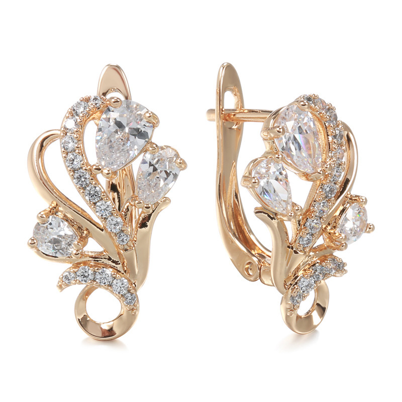 Cross-Border Eco-Friendly European, American, and Middle Eastern Rose Hollow Zircon Earrings with Diamond-Encrusted Copper Ear Clasps, Ethnic Retro Fashion Floral Design