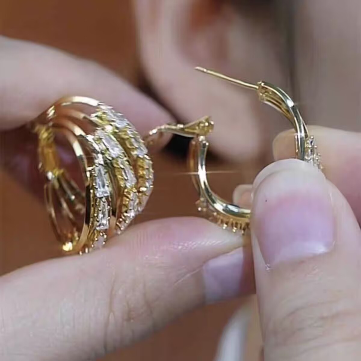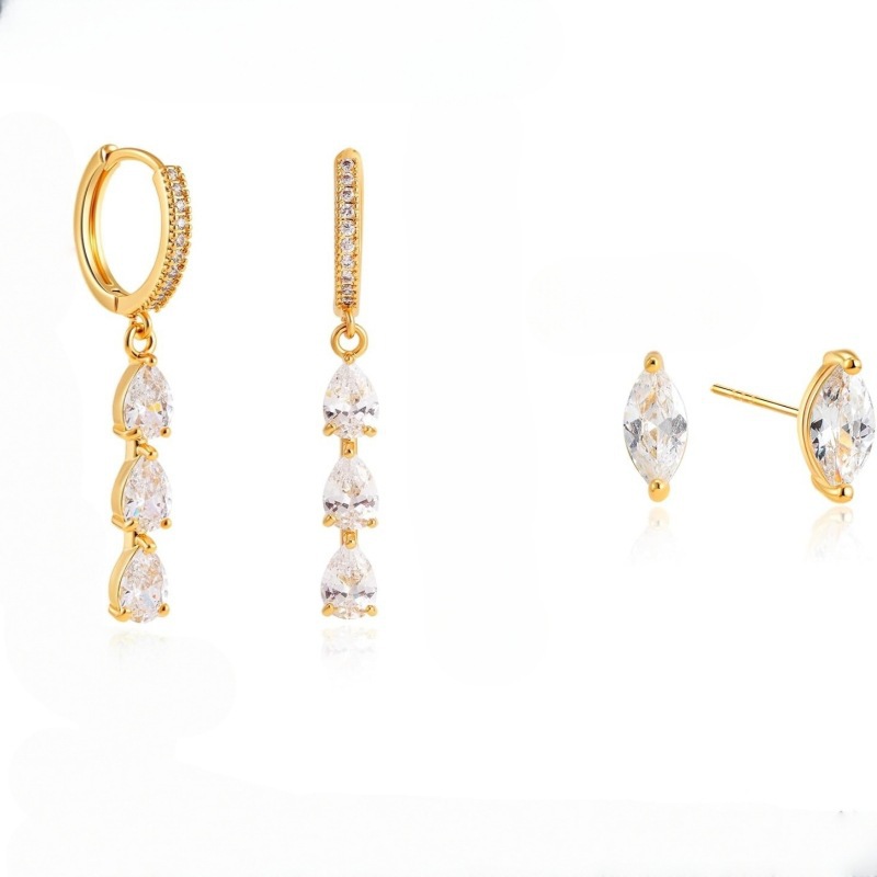 Elegant High-grade Sense Three Life III Zircon Earrings Light Luxury High-end Western Style Earrings Women's Fashion Earrings 2024 New Arrival