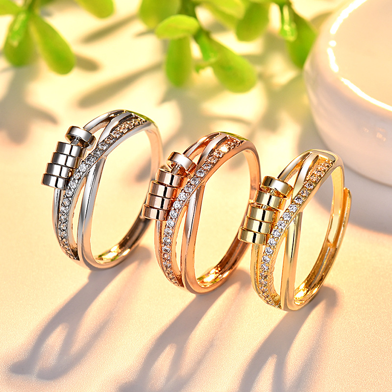 Trendy European and American Cross-Border Fashion Elegant Five-Ring Dynamic Index Finger Ring with Multiple Rings and Beads for Women