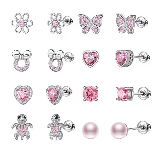 European and American popular pink inlaid zircon earrings simple pearl earrings new small earrings zircon ear buckle puncture jewelry