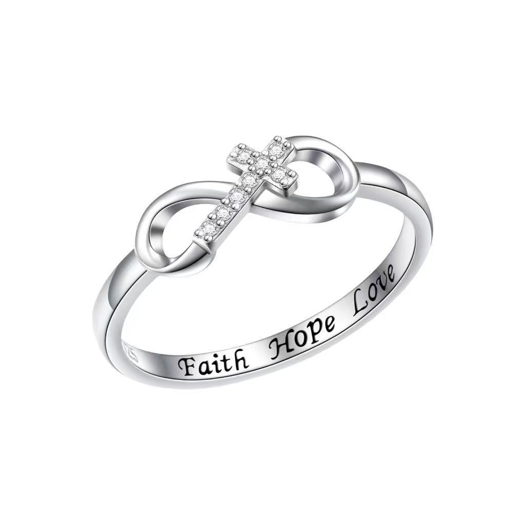 Cross-border Hot Selling Ring Women's Cross 8-character Bow High-end Sense English Fashion Trend Ring Factory Outlet