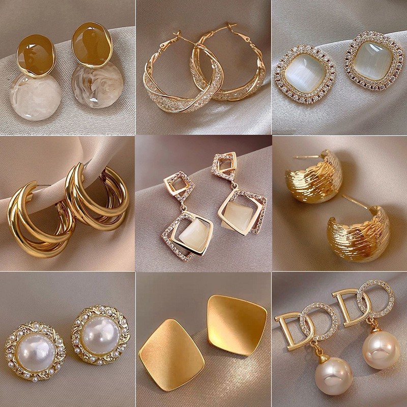 Retro Hong Kong style temperament earrings 2024 new high-end sense metal earrings niche fashion Joker earrings wholesale women