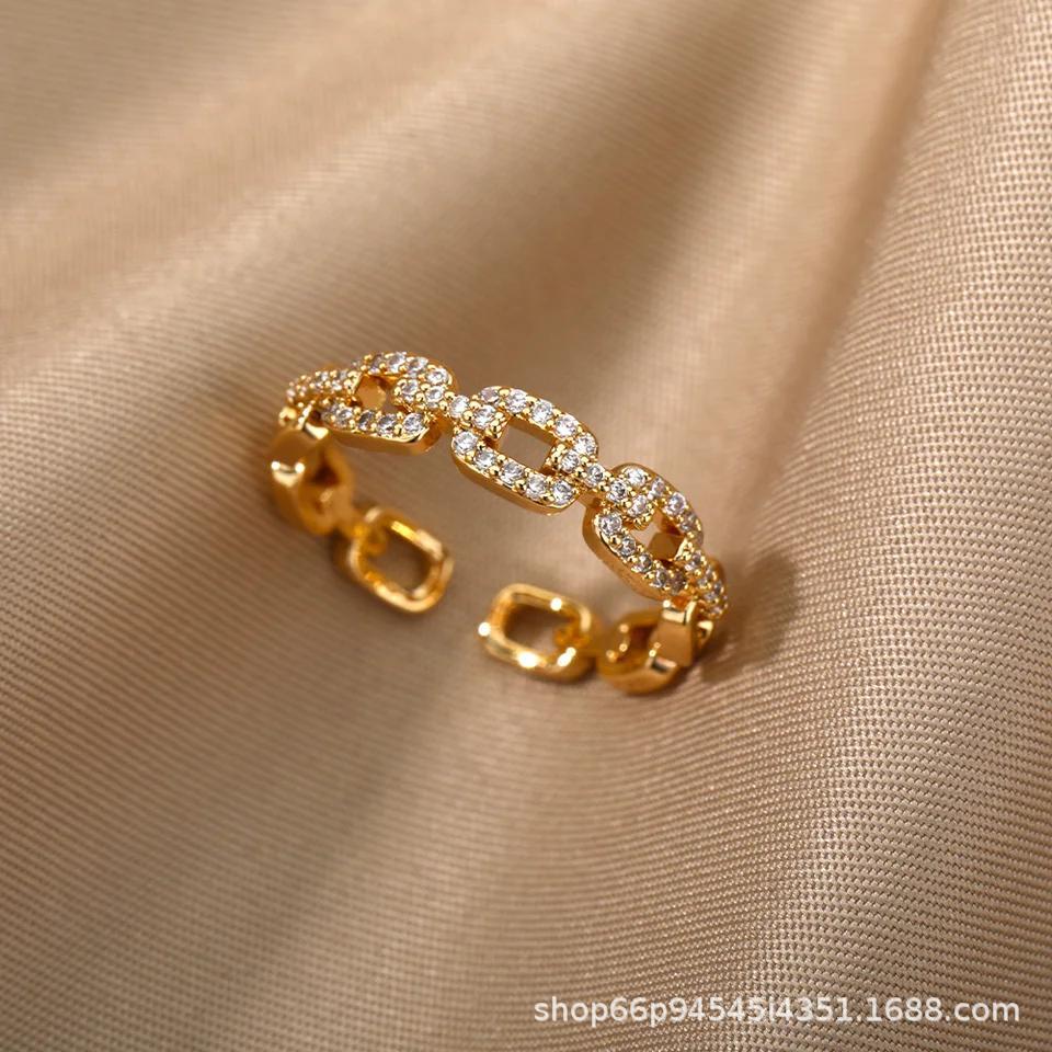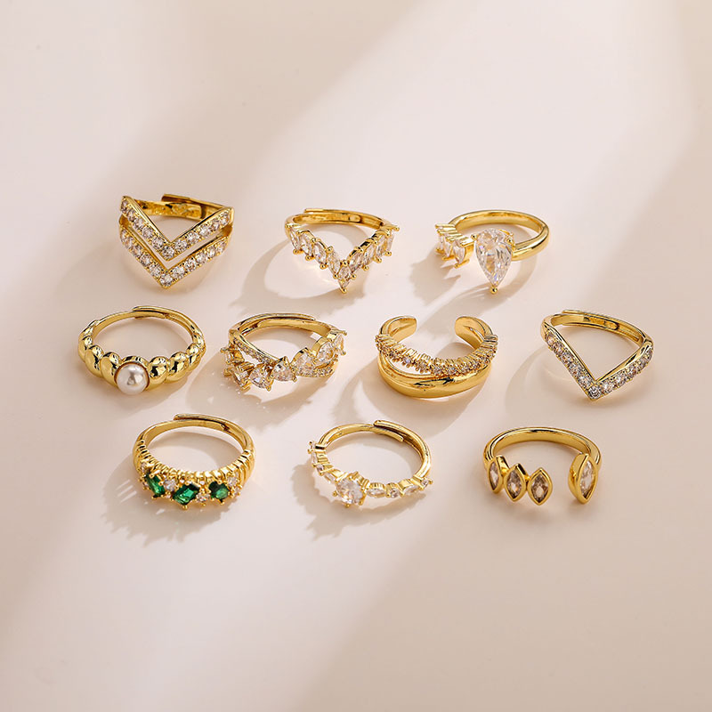 European and American Fashion Cross-Border Jewelry, Personalized Simple Design, Zircon Adjustable Copper Ring, Exquisite for Women