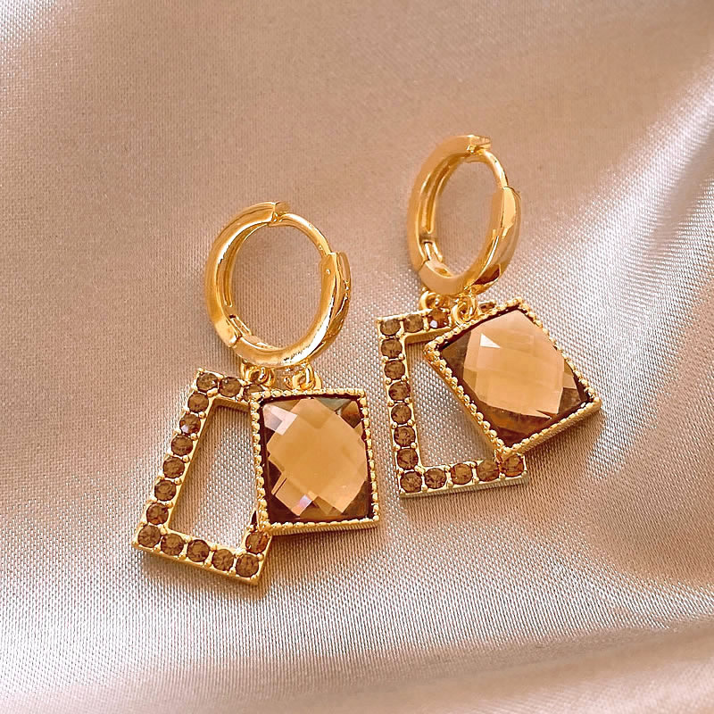 Maillard Retro Series Light Luxury Super Flash Celebrity Style Geometric Zircon Earrings Exquisite Small Fragrance Fashion Earrings for Women