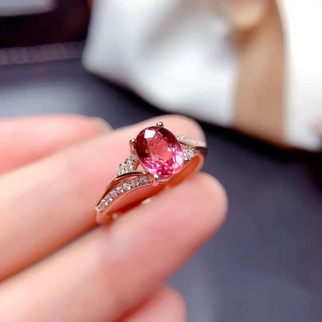 Korean Style Light Luxury Style New Red Crystal Ring Rose Gold Fashionable Versatile Light Luxury Open Adjustable Ring
