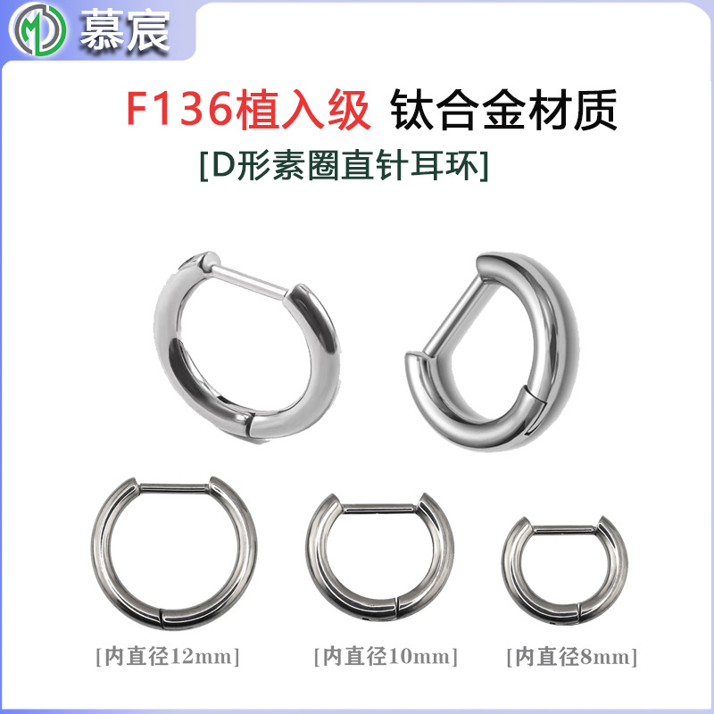 Titanium Alloy Earrings Hoop Small F6 Medical Implant Grade Plain Hoop Ear Piercing Medical Straight Needle D-Shaped Ear Hoop