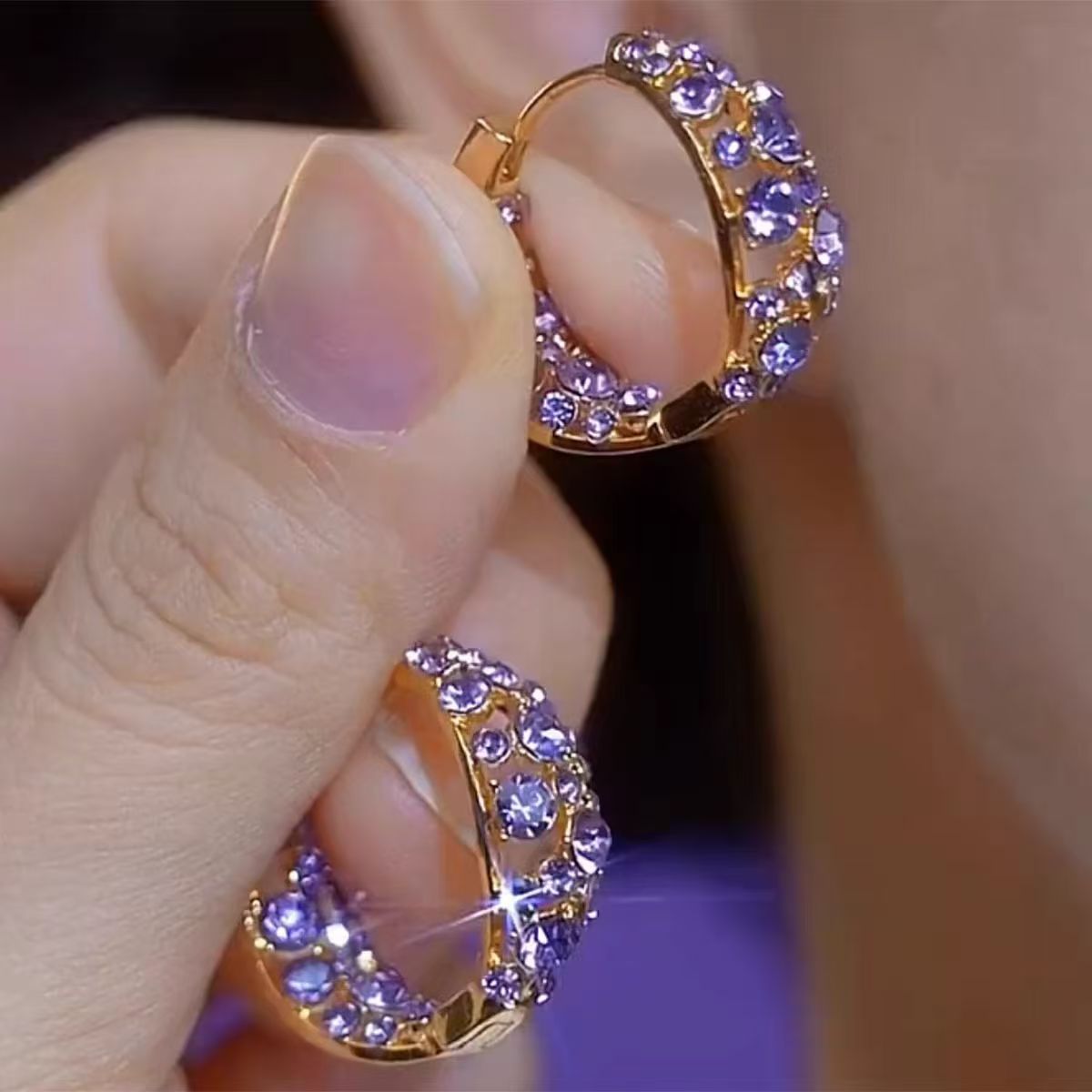New Purple Full Diamond Zircon Earrings Niche Design Elegant Accessible Luxury Earrings Fashionable Versatile Earrings Earrings