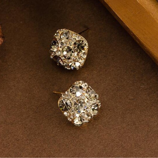 Square Brown Earrings Studded with Diamonds and Super Shiny Zirconium, Silver Needle Earrings, Accessible Luxury, Simple Niche Design, High-End and Exquisite Earrings