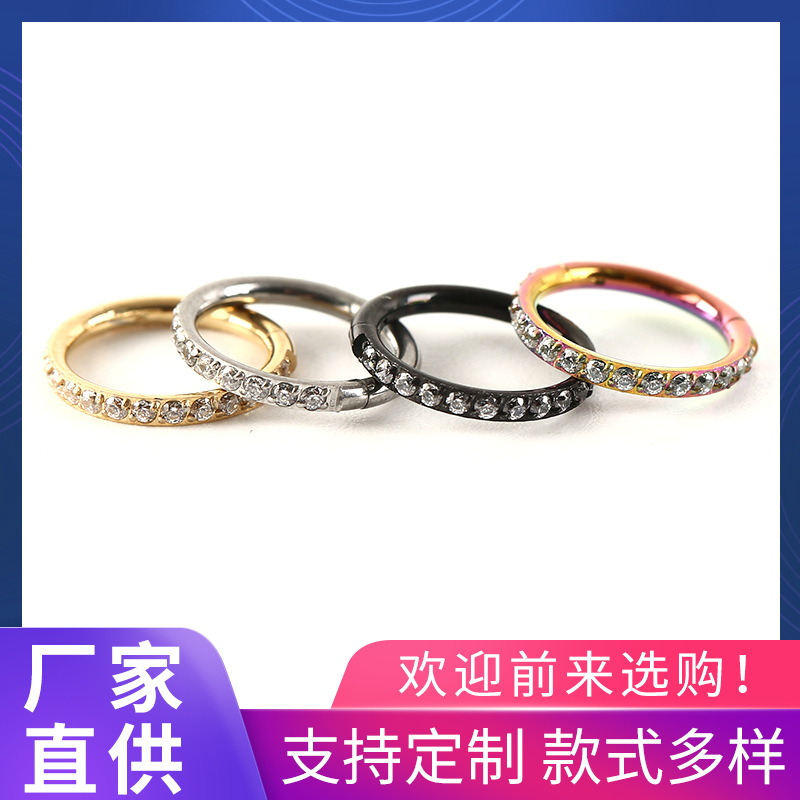 Factory Direct Sale 316L Stainless Steel Zircon-Encrusted Nose Rings, Closed Hoop Earrings, European and American Fashion Jewelry, Personalized European and American Style
