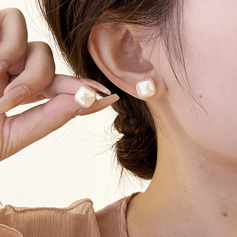S925 Silver Needle Pearl Earrings Niche Design Sweet Square Earrings 2025 New Hot Style Casual Fashion Earrings