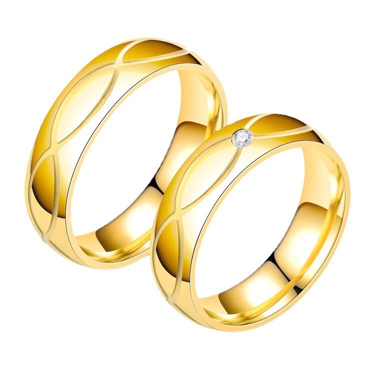 Fashionable Titanium Steel Diamond-Encrusted Couple Rings, High-End Design Cross-Plaid Men's and Women's Rings, Cross-Border Popular Jewelry