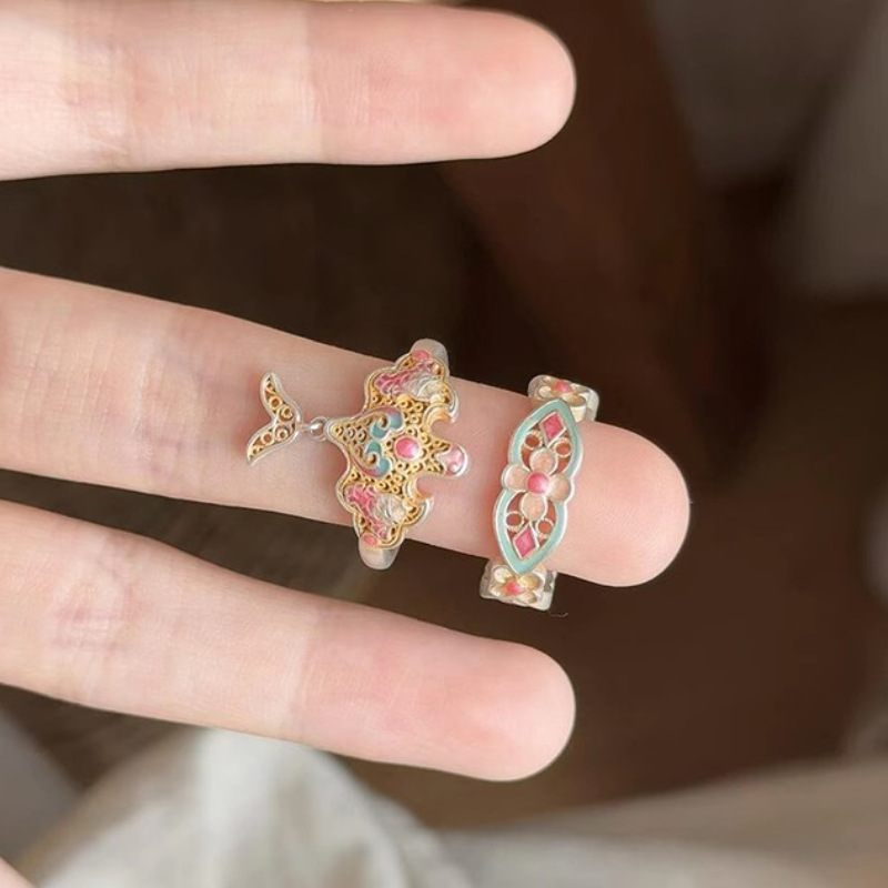 "Sound of Sorrow" New Chinese Style Paper Kite Glaze Open Ring for Women, Fashionable, Exquisite, High-End Ring