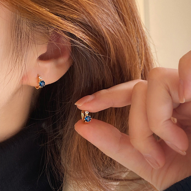 Simple All-match Micro-inlaid Blue Zircon Ear Buckle Women's Exquisite Light Luxury Earrings Niche Design Sense Earrings Gift