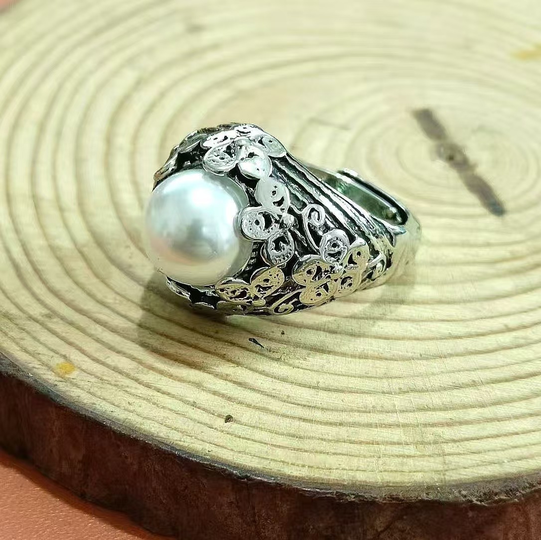 Light Luxury Style High-End Filigree Weaving Design Flower Pearl Ring Fashionable and Versatile Niche Ring